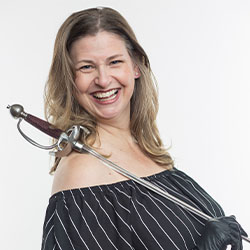 Gina Cerimele-Mechley is a nationally recognized movement/acting coach and Shakespearean teacher as well as one of the few female fight directors in the country with the Society of American Fight Directors. Her work as a performer, fight/intimacy director, and dance choreographer has been seen across the country at theaters such as the Tony Award-winning Denver Center Theatre Company, Alabama Shakespeare Festival, Sterling New York Renaissance Festival, Alaska Cabin Nite Dinner Theatre, Busch Gardens, Cincinnati Shakespeare Company, Cincinnati Ballet, Cincinnati Opera, Cincinnati Playhouse in the Park, Ensemble Theatre Cincinnati, and the Human Race Theatre in Dayton. Before deciding to have two children, she spent time in the stunt world as a motion capture artist for Nintendo. Cerimele-Mechley has taught in the theater departments of the Cincinnati College-Conservatory of Music, Xavier University, Northern Kentucky University, and Miami University, and at the Alabama Shakespeare Festival, where she also served as the resident dance choreographer. She prefers coaching students rather than being onstage herself, so she focuses much of her time on her nationally recognized educational theater company, Cincinnati Actor’s Studio & Academy, where students get the chance to work and perform next to professional artists on more mature material in preparation for college and beyond. Cerimele-Mechley was the first recipient of the Cincinnati Arts Association Arts Educator Award, awarded the U.S. Distinguished Teacher Award, nominated for the Excellence in Theatre Education Award from the Tony Awards, and knighted by the order of the Knights of Madoc, in honor of her “work in the art of stage combat and in recognition of her fine character and enduring good will.”
