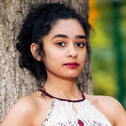 Hailing from Sacramento, California, 19-year-old soprano Tiara Thankam Abraham is in her second year of doctoral studies in voice performance, studying with Michelle DeYoung. Praised for her bell-like clarity, agile coloratura, and expressive acting skills, Abraham has performed as a soloist globally, including at Carnegie Hall, the Vatican, and Musikverein in Austria as well as on national TV and NPR affiliate radio stations. She has performed as Zerlina in Don Giovanni with Greve Opera Academy and Belinda in Dido and Aeneas at the Chicago Summer Opera. She has also performed scenes as Susanna in Le Nozze di Figaro, Hero in Beatrice et Benedict with Opera Workshop at Jacobs, and in the opera chorus of IU Jacobs Opera Theater’s production of Eugene Onegin. Most recently, she performed as Miles in IU’s production of Britten’s The Turn of the Screw. As a concert soloist, she has performed with the Camellia Symphony Orchestra and UC Davis Symphony Orchestra, where she performed as the soprano soloist in Bach’s Magnificat. Abraham has also won numerous national and international competitions, including first prize in the 2025 George Shirley Vocal Competition. In Bloomington, she is a choral scholar at First Christian Church. She currently serves as social media manager for IU’s chapter of Student National Association of Teachers of Singing.