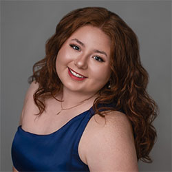 Soprano Maggie Stall, from Avon, Indiana, is working toward a Master of Music in Voice Performance degree from the Jacobs School, where she studies with Alice Hopper. Stall is also pursuing a Master of Arts in Speech Pathology degree and works in the Voice Physiology and Imaging Lab at Indiana University. She completed her undergraduate degrees in 2024 at Indiana University, where she earned a Bachelor of Music in Voice Performance as well as a Bachelor of Arts in Speech and Hearing Sciences. Past performances at IU include Fiordiligi/party guest in Die Fledermaus with an extended party scene (2024), opera chorus in Candide (Bernstein) in 2023 and the chorus in the summer 2023 performance of Dido and Aeneas (Purcell). Stall received an Honorable Mention at the Indianapolis Matinee Musicale undergraduate competition in 2024. She has also performed with the Hendricks Civic Theatre in the role of Mother Abbess in the summer 2024 production of The Sound of Music as well as in the summer 2025 production of The Secret Garden.
