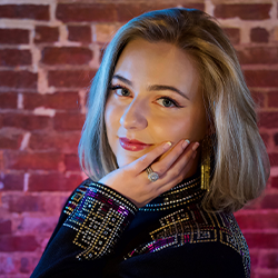 Mezzo-soprano Lauren Bolla, from Chesterton, Indiana, is a senior pursuing a bachelor’s degree in voice performance under the tutelage of Peter Volpe. With IU Jacobs Opera Theater, she has performed the roles of Beggar Woman in Sondheim’s Sweeney Todd and La Zelatrice in Puccini’s Suor Angelica. She also sang in the chorus of The Amazing Adventures of Kavalier & Clay, in collaboration with the Metropolitan Opera. Also at IU, Bolla has performed scenes as Jo March (Little Women) and Orfeo (Orfeo ed Euridice) in Patricia Stiles’ Opera Workshop. She will perform scenes from Menotti’s The Old Maid and the Thief as Miss Todd this fall. She is also the 2025 second-prize winner of the Indianapolis Matinee Musicale competition. An avid lover of song, Bolla studied in the Lieder Studio of AIMS in Graz, Austria, in 2024. There, she also had the opportunity to sing excerpts from Handel’s Messiah in the Graz Cathedral. In Bloomington, she is an alto choral scholar at Trinity Episcopal Church. Later in October, she will perform as the mezzo soloist in Beethoven’s Ninth Symphony with the Eastern Symphony Orchestra at Eastern Illinois University and with the Heartland Festival Orchestra.